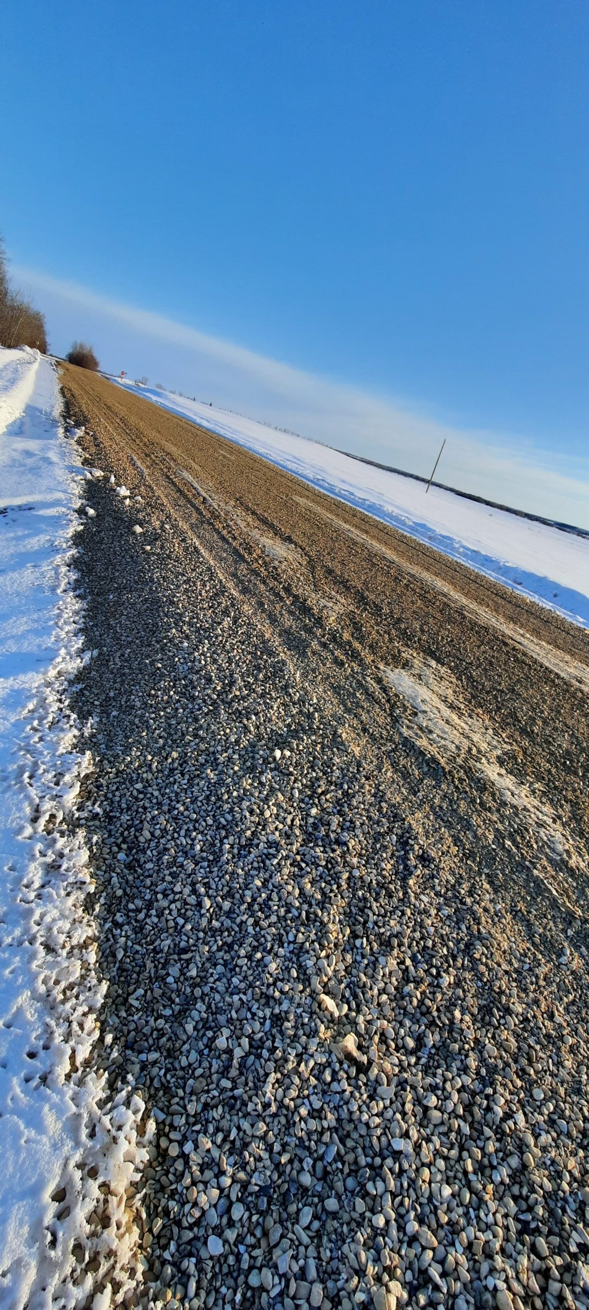 Sporting my best Harry and the Henderson’s slept on it all night hair doo. I put on my bathrobe and snow boots to inspect the new gravel that was put down yesterday. My only worry was that a lonely 7-foot high Sasquatch female may suddenly run out of the forest and have her way with me. I really needed to see that movie again.