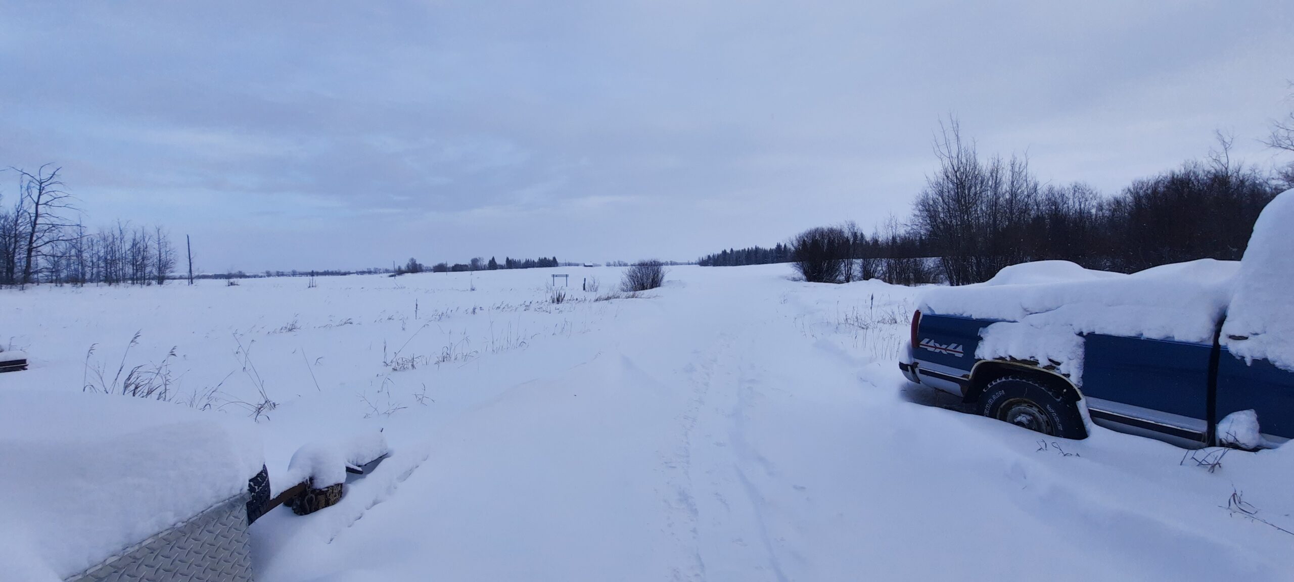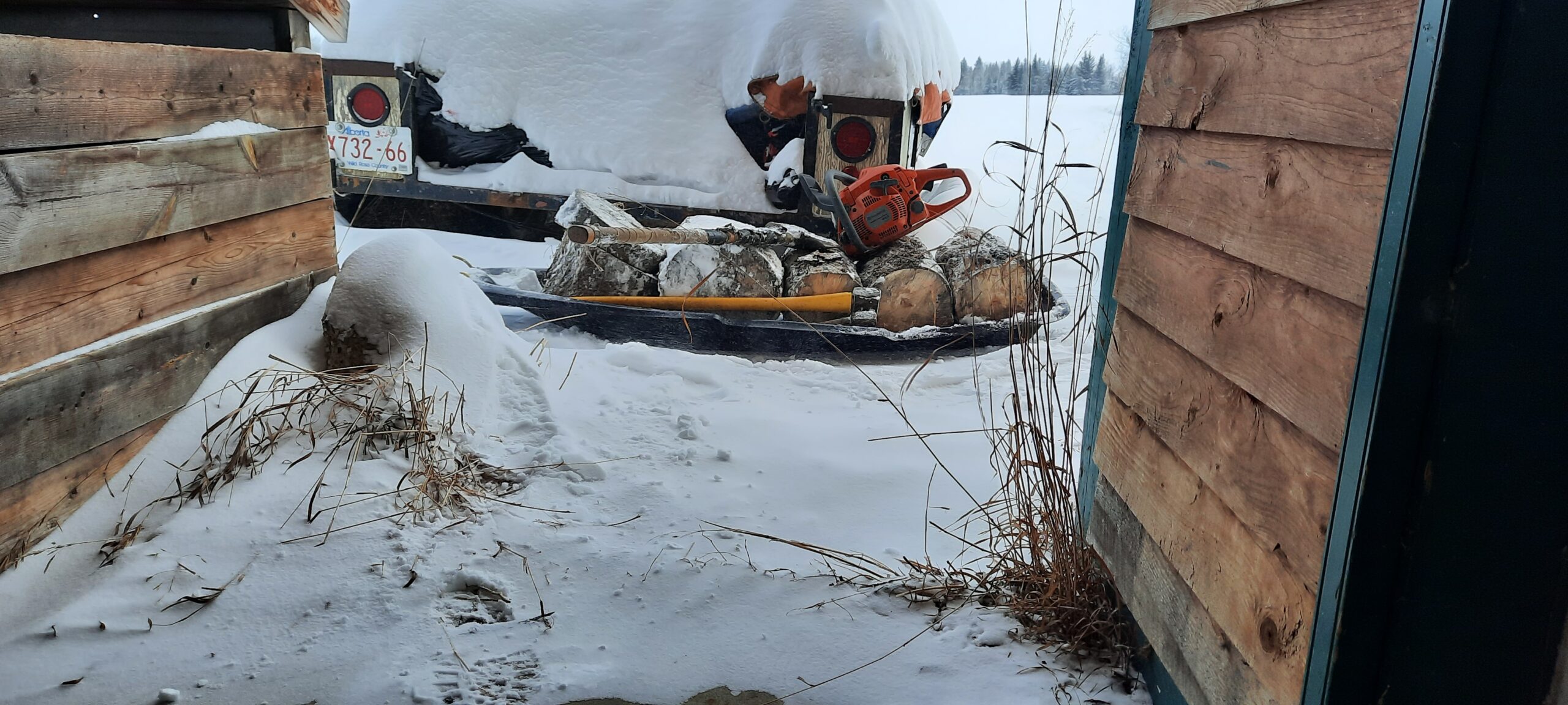 I am taking a rest by the fire before I go out to chop. I forgot a basic rule for snowstorms with wind. Snowdrifts, big ones.