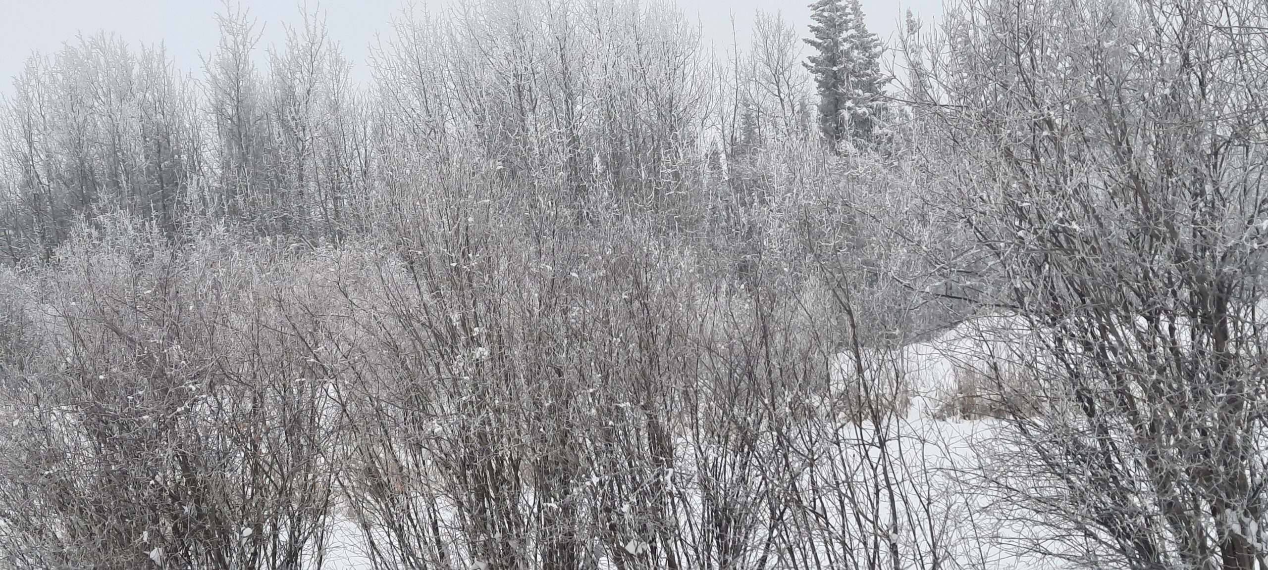 Yup it’s a white cow eating daisies tops in a snowstorm. The pictures don’t show it well. Everything is white , clouds, trees, my pond.